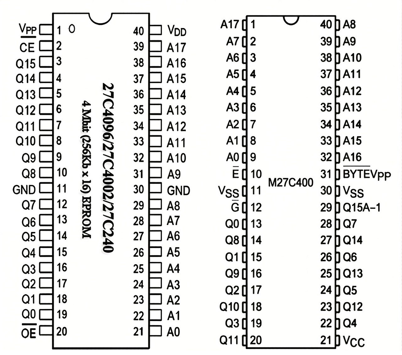 Les EPROM retenues pour la réparation seront les rares 4 Mbits de type 27C400 que j’avais à ma disposition : des MX 27C4100 avec un temps d’accès acceptable de 150 ns.