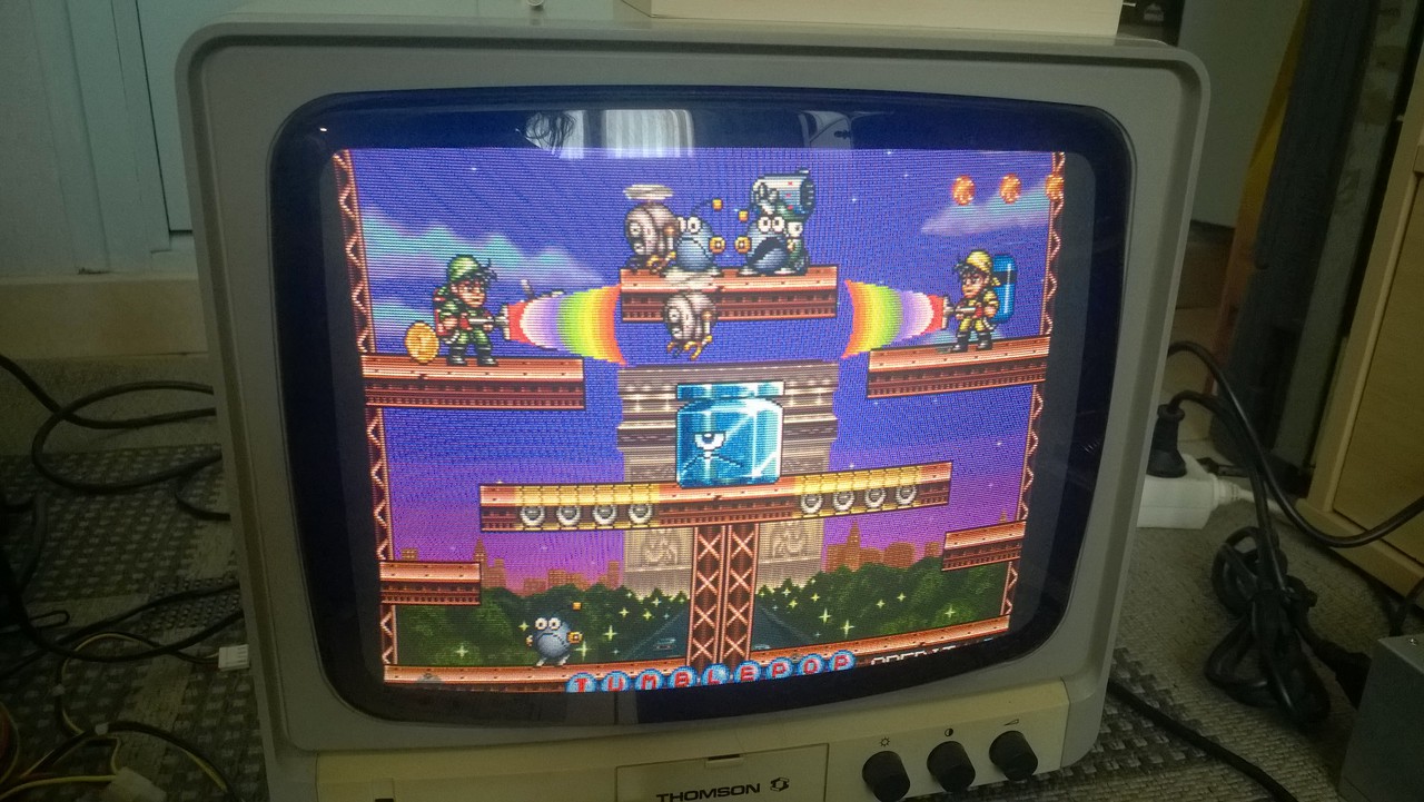 on progresse avec un jeu qui tourne sur son attract mode mais qui laisse transparaître des défauts visuels sur les sprites de premier plan.