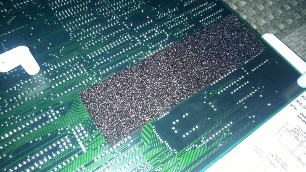 Je m’en vais donc reprendre les pastilles martyrisées, coller les composants critiques et protéger mes reprises de pistes avec une mousse adéquate…