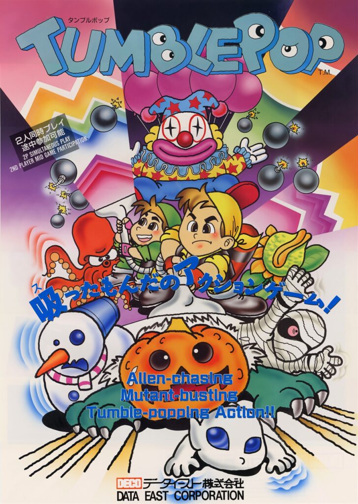 Les années « post ’90 » sont un gage de qualité pour la production vidéoludique de ce fabriquant : Tumble Pop ne déroge pas à la règle avec des sprites colorés et une musique entrainante.